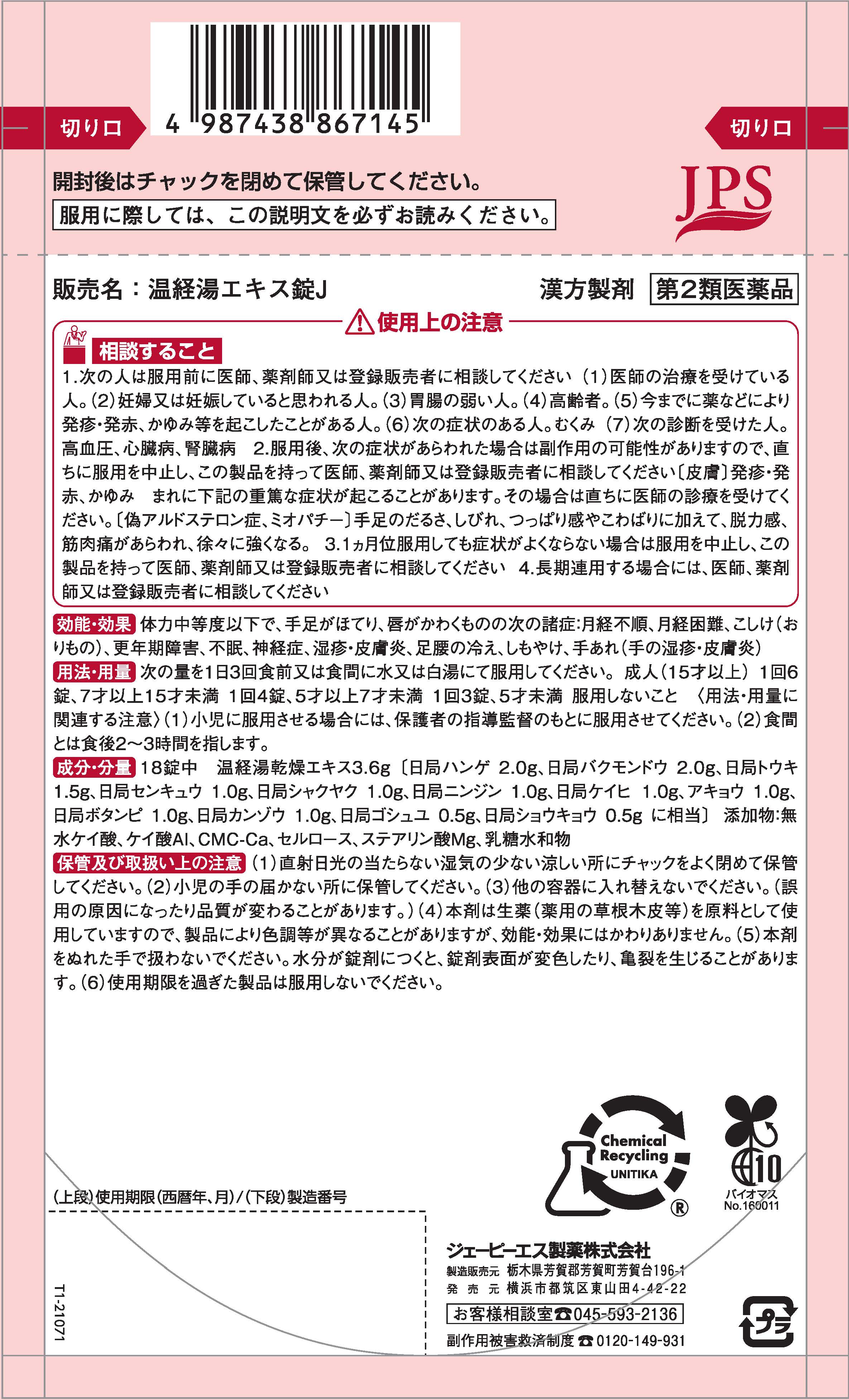 【販売名】温経湯エキス錠J