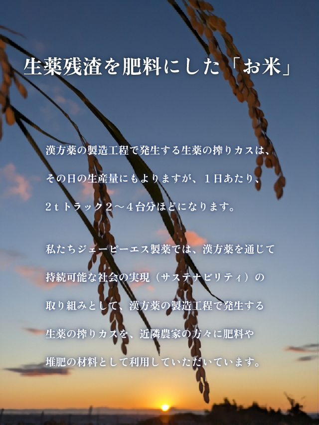 「生薬残渣を混ぜた肥料を使用すると害虫も寄らなくなり、農薬の使用量も激減する」そうです。